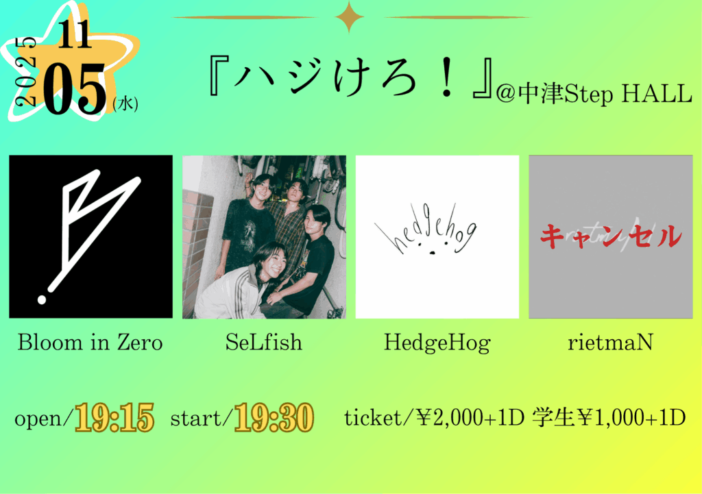 ADV:¥3,000+1D DOOR:¥3,500+1D