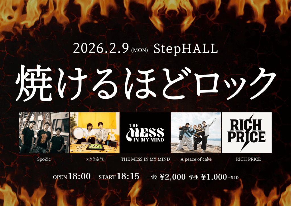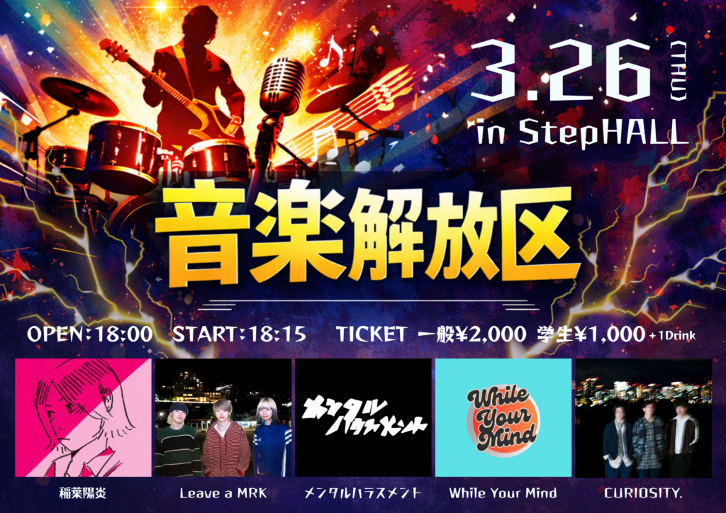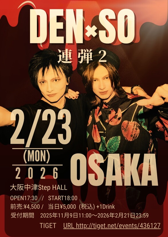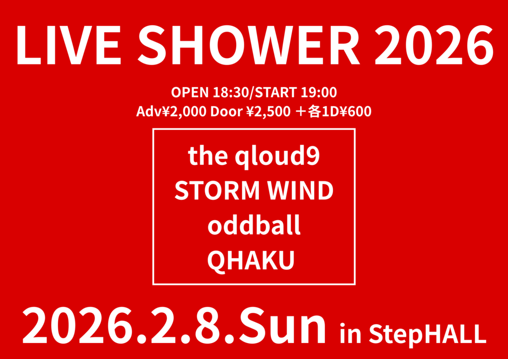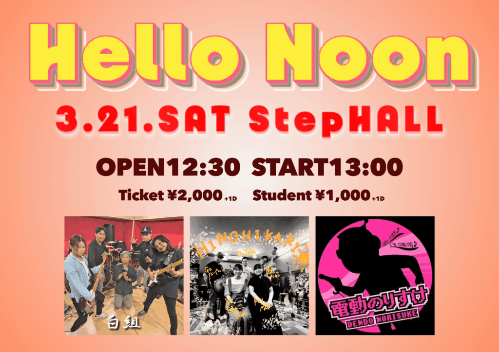 ADV:一般¥2,000 学生¥1,000 (+各1D¥600) DOOR:一般¥2,000 学生¥1,000 (+各1D¥600)