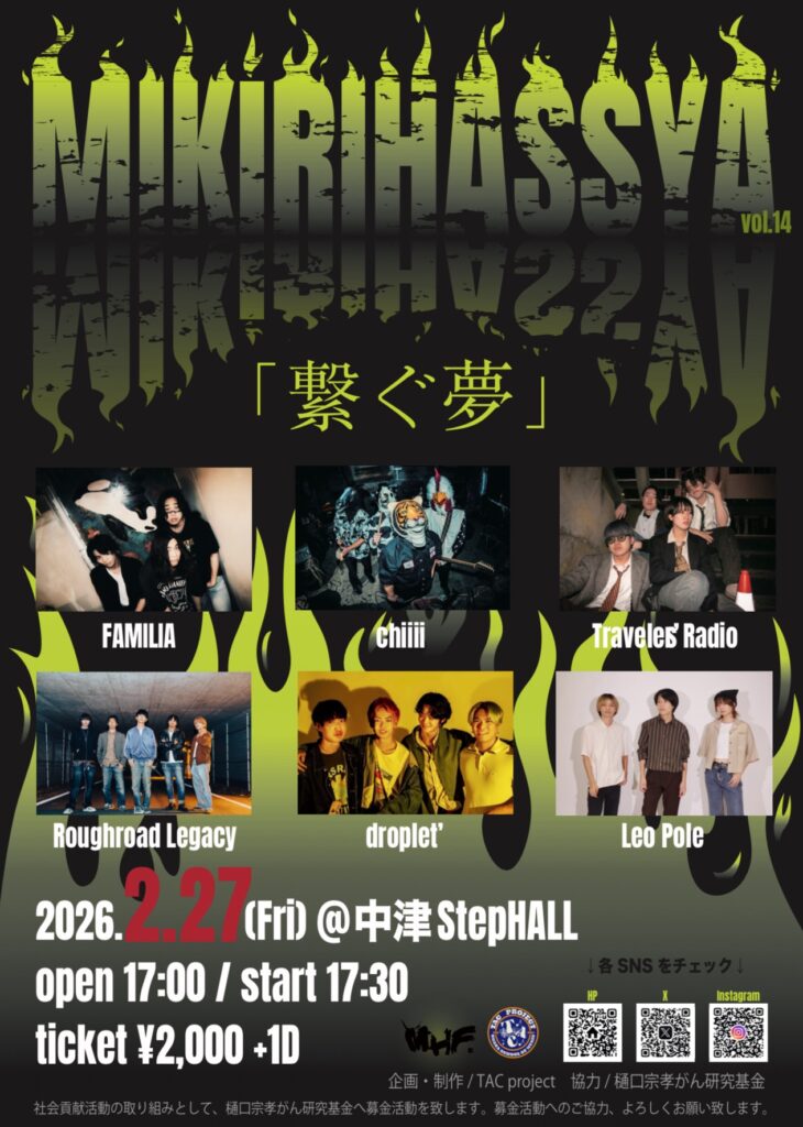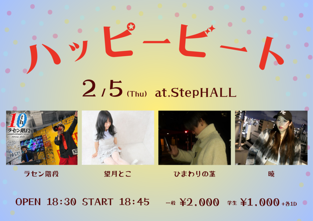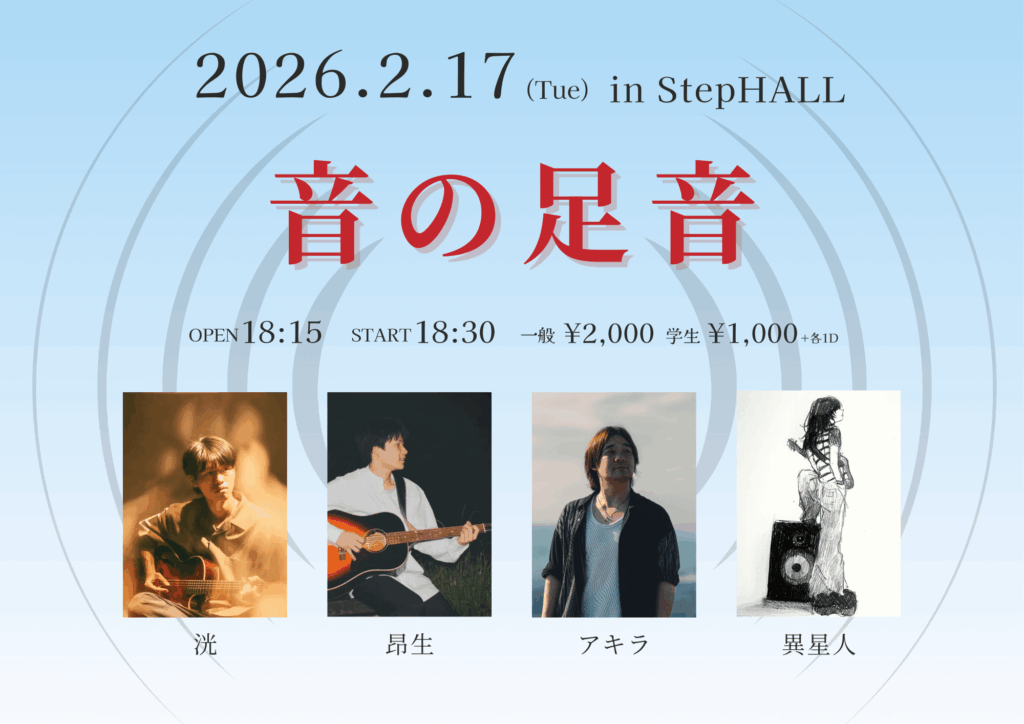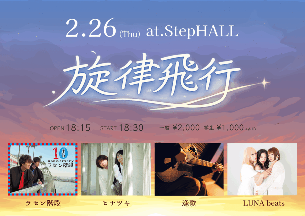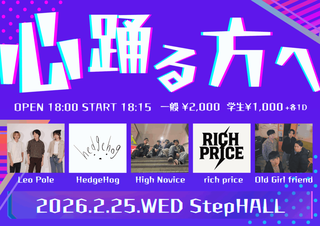 ADV:一般¥2,000 学生¥1,000 (+各1D¥600) DOOR:一般¥2,000 学生¥1,000 (+各1D¥600)